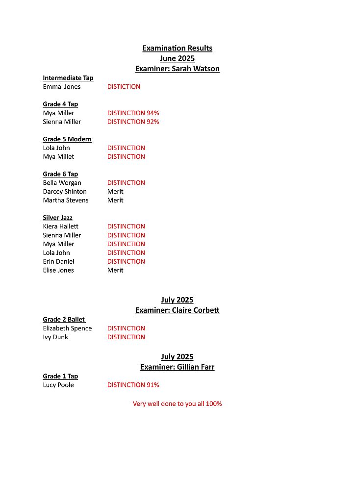 ISTD Graded and Vocational Ballet, Tap, Modern and Jazz examinations are taken throughout the year by our students at the teachers discretion.